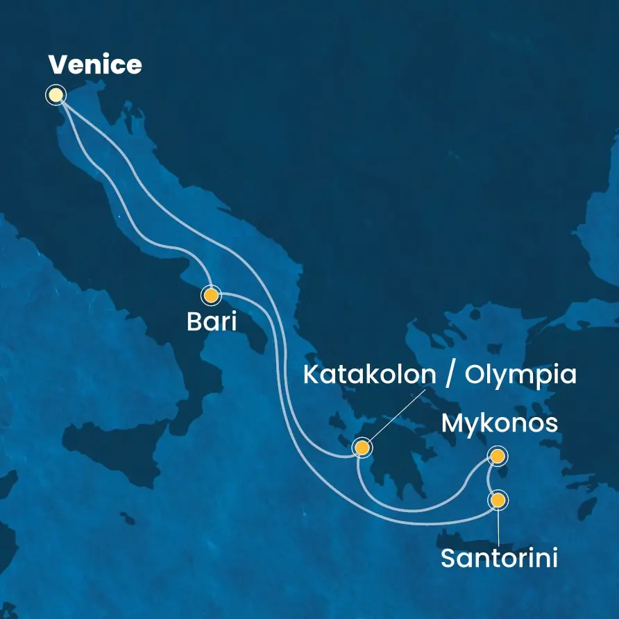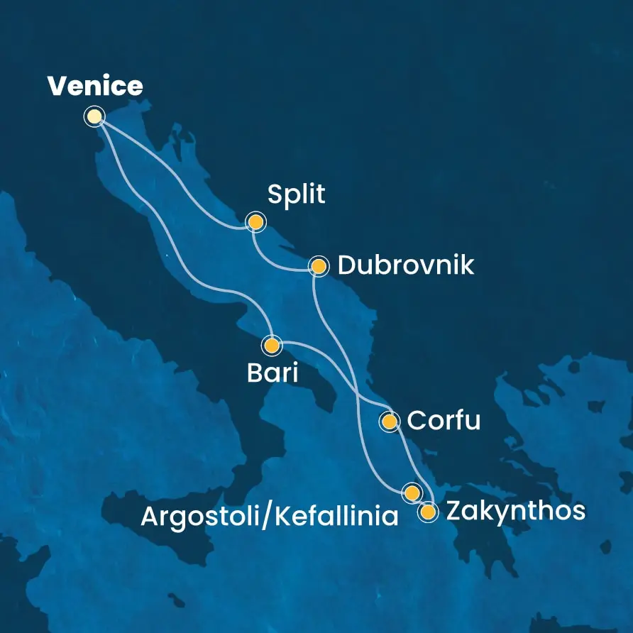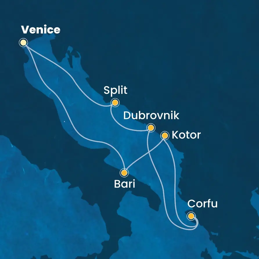 Opcija 15-dnevnog krstarenja iz Venecije, sa kombinacijom dva letnja itinerera