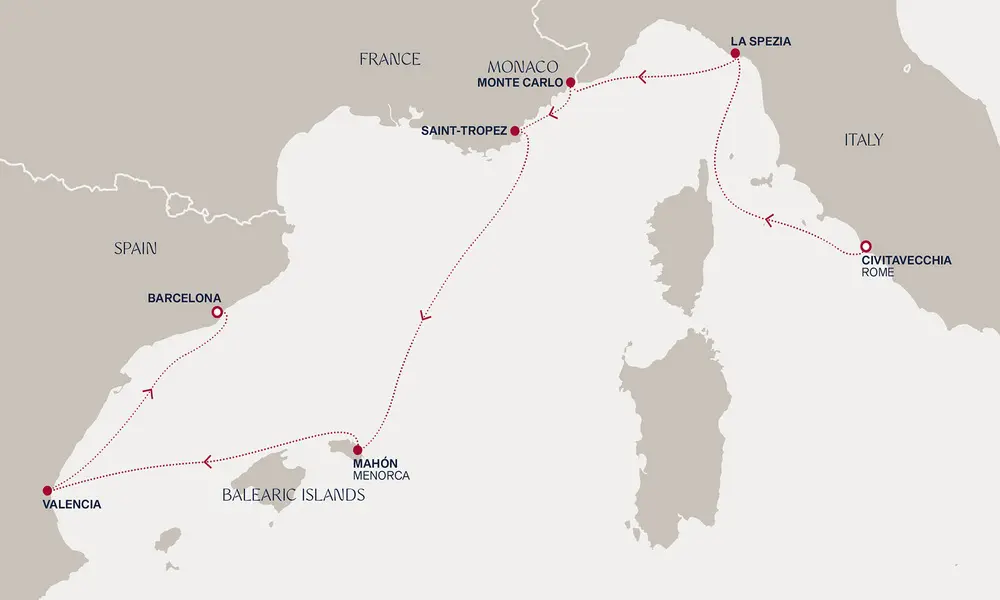 Luksuzno krstarenje od 05.10. - 12.10.2026. iz Rima – Porto Santo Stefano, Azurna obala, Španija