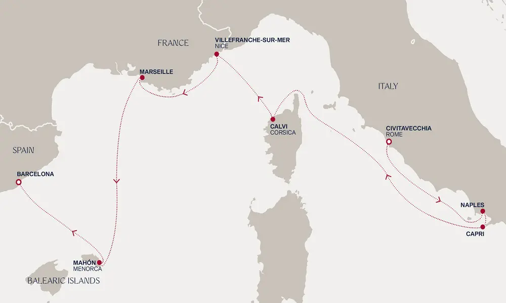 Luksuzno krstarenje od 21.09. - 28.09.2026. iz Rima – ostrvo Kapri, Korzika, Azurna obala, Menorka